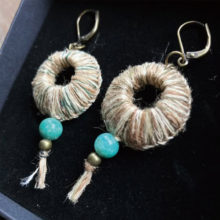 つむいで・織って・リングになった結城紬のきりすね(残糸)アクセサリー。