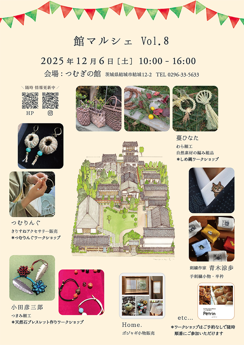 2025年12月6日(土)につむぎの館の中庭で「館マルシェ」を開催します。